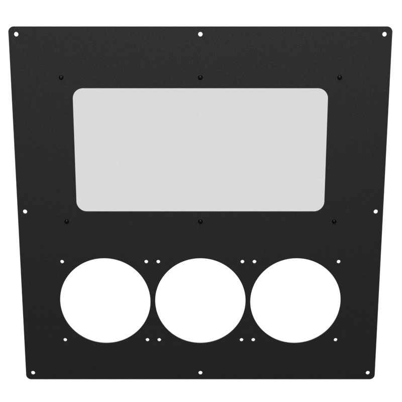 This 18x18 Triple Original panel is a high-performance modular side/top panel designed for any Mountain Mods case with an 18x18 inch side as part of the hyper-modular panel system. It features a large rectangular upper cutout paired with three precision-cut 120mm fan mounts for balanced cooling and visibility.